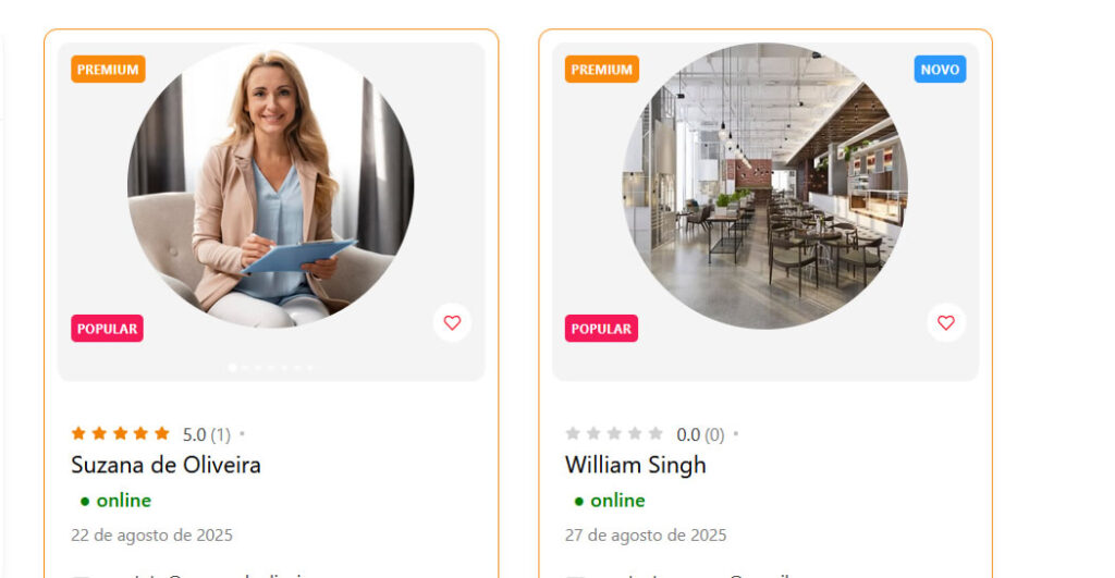 Seu perfil aparece no topo da busca, com selo Premium e mais visibilidade.
